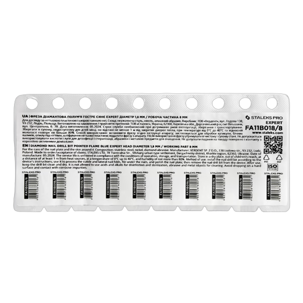 STALEKS PRO EXPERT sinine teemantfrees terava leegi kujuga (1,8 x 8 mm) on keskmise abrasiivsuusega otsik naha delikaatseks töötlemiseks ja koorumiste viilimiseks ilma vigastamisohuta. Maniküüris kasutatakse kutiikulatõstmiseks ja -eemaldamiseks, külgvallide ja küüneümbruse siinuste töötlemiseks. Podoloogias on suurepärane frees kandade ja pragude töötlemiseks. Sobib nii algajatele kui kogenud meistritele.